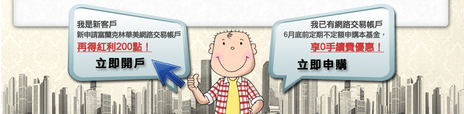 基金配息率不代表基金報酬率,且過去配息率不代表未來配息率;基金淨值可能因市場因素而上下波動。配 息型基金的配息可能由基金的收益或本金中支付。任何涉及由本金支出的部份,可能導致原始投資金額減損 。該基金進行配息前未先扣除應負擔之相關費用。本公司於公司網站www.FTFT.com.tw 揭露各配息型基金近 12個月內由本金支付配息之相關資料供查詢。投資人於申購時應謹慎考量。 |
