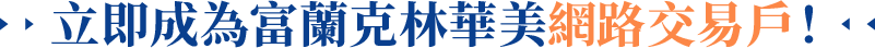 註1:成功成為富蘭克林華美投信基金網路交易戶( 可網路下單),即可獲贈紅利3,000點。點數匯入時間:隔週一下午四點匯入。點數使用期限:自匯入日起算,一年內有效。相關說明請詳見以下網頁: 紅利點數使用說明。 註2:成功成為富蘭克林華美投信基金網路交易戶( 可網路下單),可加入富蘭克林華美投信LINE官方帳號,綁定LINE個人化服務,享專屬服務。相關說明請詳見以下網頁:LINE個人化服務。 活動內容如有調整,本公司保留活動變更之權利。