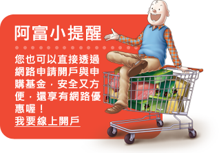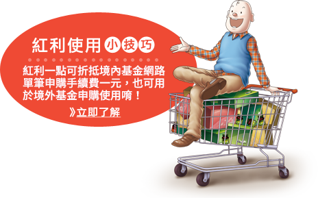 註1:於2016/10/1~2016/12/30下午4點止(以委託確認時間為準)網路定期定額或定期不定額申購本基金不限金額、不限契約份數,即可享該契約終身0手續費優惠。 註2:透過網路單筆申購本基金每達1,000元,贈送紅利點數1點。