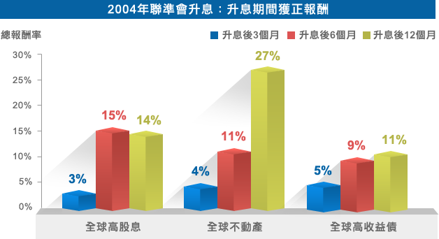 隨著美國啟動升息循環,除了享股息、債息、租金收益,資本利得亦有機會隨著景氣回升而增加,可充分參與全球經濟成長。