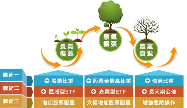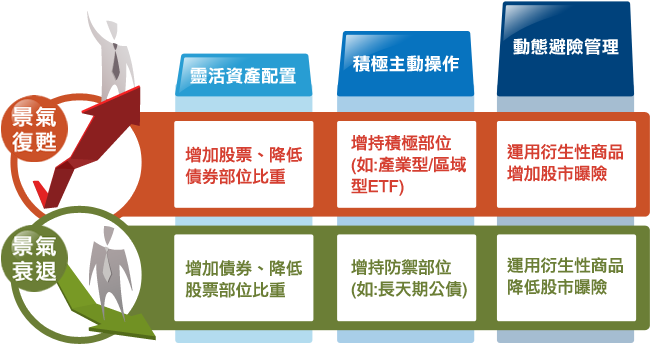 為追求較佳報酬,保護下檔風險,投資團隊將依景氣循環動態調整投資組合。