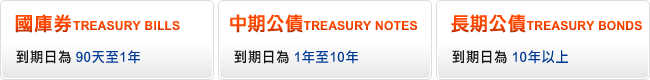 | | 美國財政部公債 | 財政部公債被視為最安全的債務工具,因為這些公債係由美國政府的信用作為完全擔保,定期支付本金與利息。種類有: