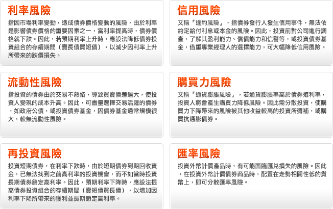 | 當債券的投資風險降低,例如債信獲得調升,債券的利差就會縮小,推升債券價格上揚;而當債券的投資風險升高,例如債信品質下降,利差就會擴大,債券價格則會下跌。由此可見,利差的變化反映目前投資該債券的風險貼水,也是影響債券價格變動的因素。 |