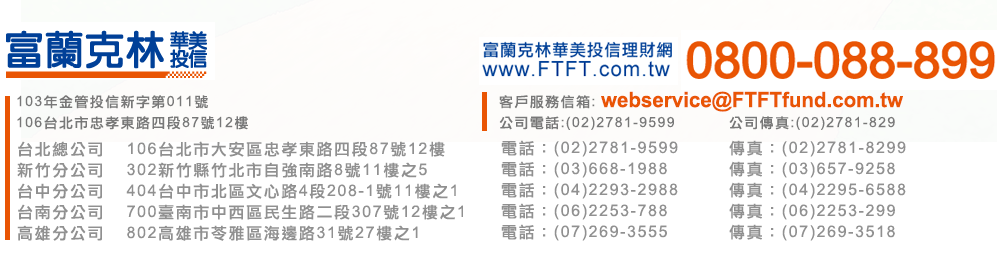 本文提及之指數試算結果並非代表特定基金之投資成果,亦不代表對特定基金之買賣建議,基金不同於指數,基金可能會有中途清算或合併等情形,投資人無法直接投資指數。本文提及之經濟走勢預測不必然代表本基金之績效,本基金投資風險請詳閱基金公開說明書。【富蘭克林華美投信獨立經營管理】