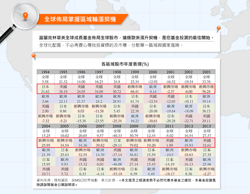 • 本文提及之指數試算結果並非代表特定基金之投資成果,亦不代表對特定基金之買賣建議,基金不同於指數,基金可能會有中途清算或合併等情形,投資人無法直接投資指數。本文提及之經濟走勢預測不必然代表本基金之績效,本基金投資風險請詳閱基金公開說明書。【富蘭克林華美投信獨立經營管理】
